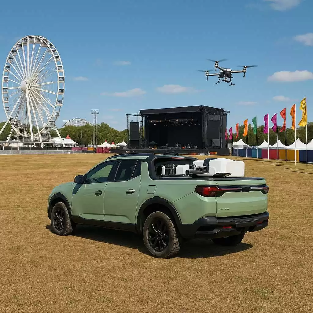 De drones vliegen, landen en laden automatisch via de DJI Dock 3. Geen piloot nodig op locatie. Ideaal voor meerdaagse festivals of grote buitenevenementen.
